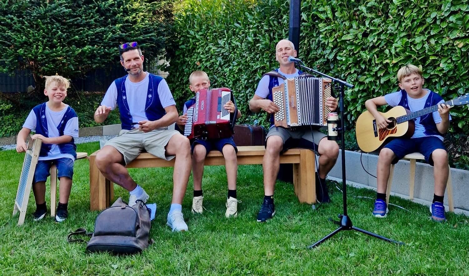 Das «Rüüschtal Quintett» aus Wohlenschwil steht für Stimmung, Spass und Unterhaltung. Mit einem vielfältigen Repertoire von volkstümlicher Musik über Schlager bis hin zu Evergreens schaffen sie es, jedes Publikum mitzureissen. Der Schwerpunkt liegt bei Schweizer Hits. Die Band besteht mittlerweile aus Stefan (Gesang, Akkordeon) mit seinen Kids Andrin, Cedric und Kilian (Akkordeon, Gitarre) sowie Kollege Andy (Gesang, Perkussion).